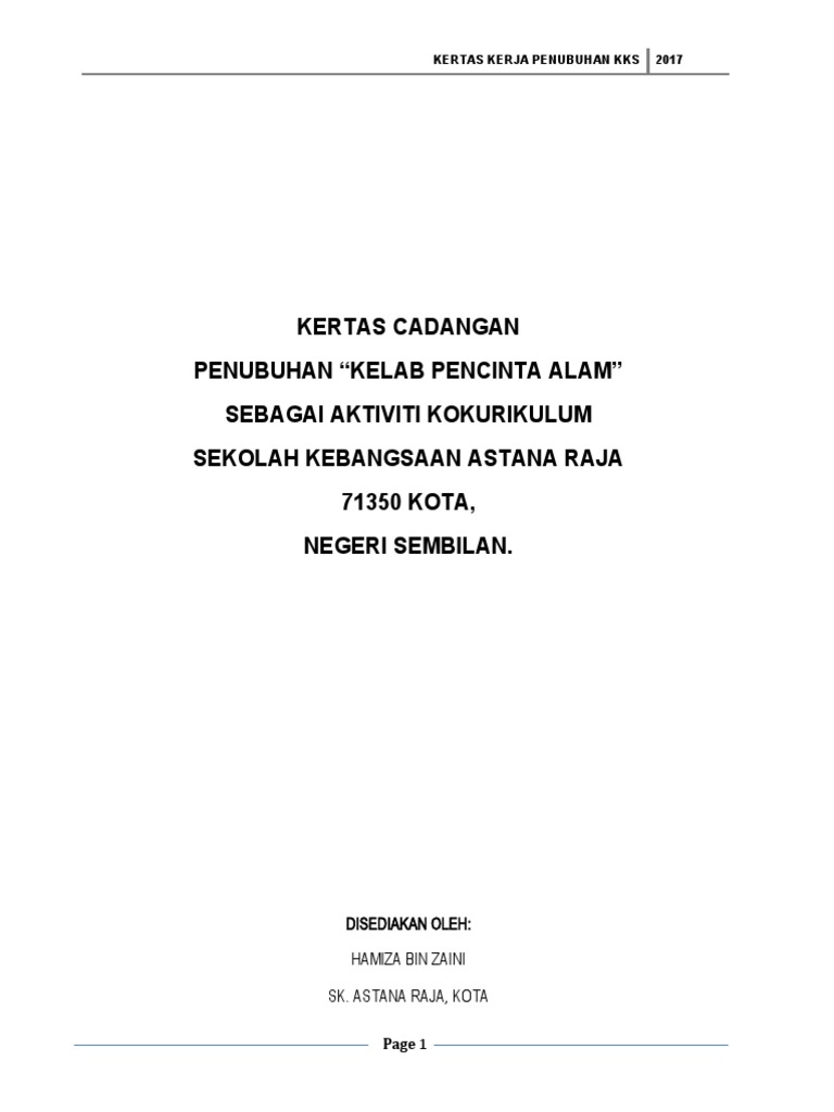 Contoh Kertas Kerja Penubuhan Persatuan Pdf